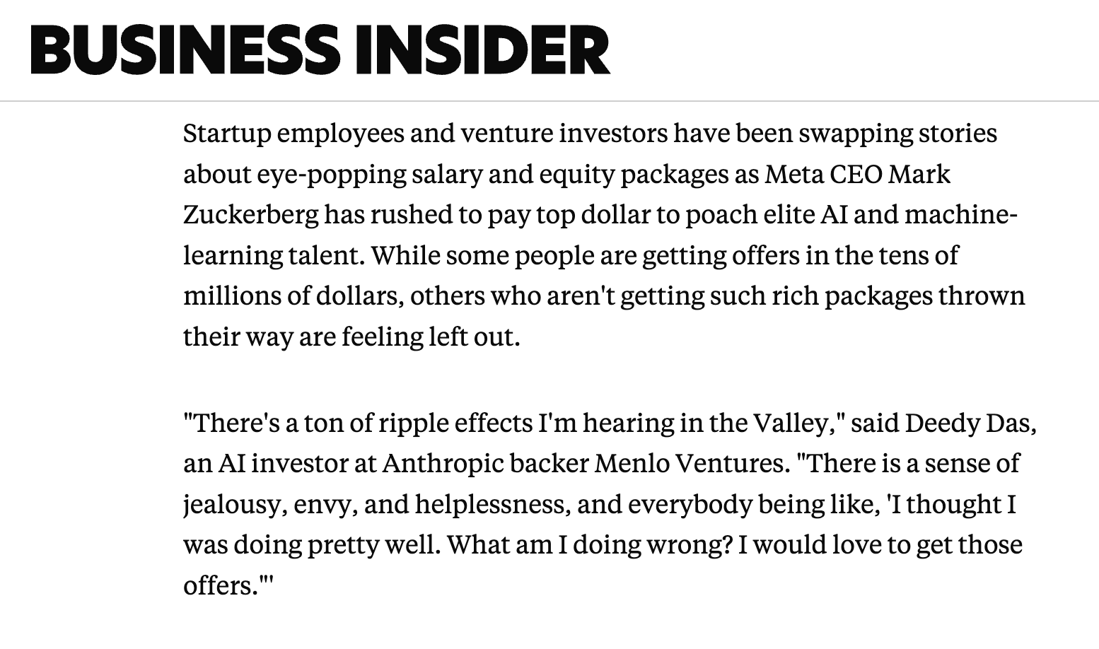 But wait, tech has a cover story for this! Yes, it’s um, it’s uh… it’s all that AI! Haven’t you heard about the arms race? They’re paying guys nine figure compensation packages!!!